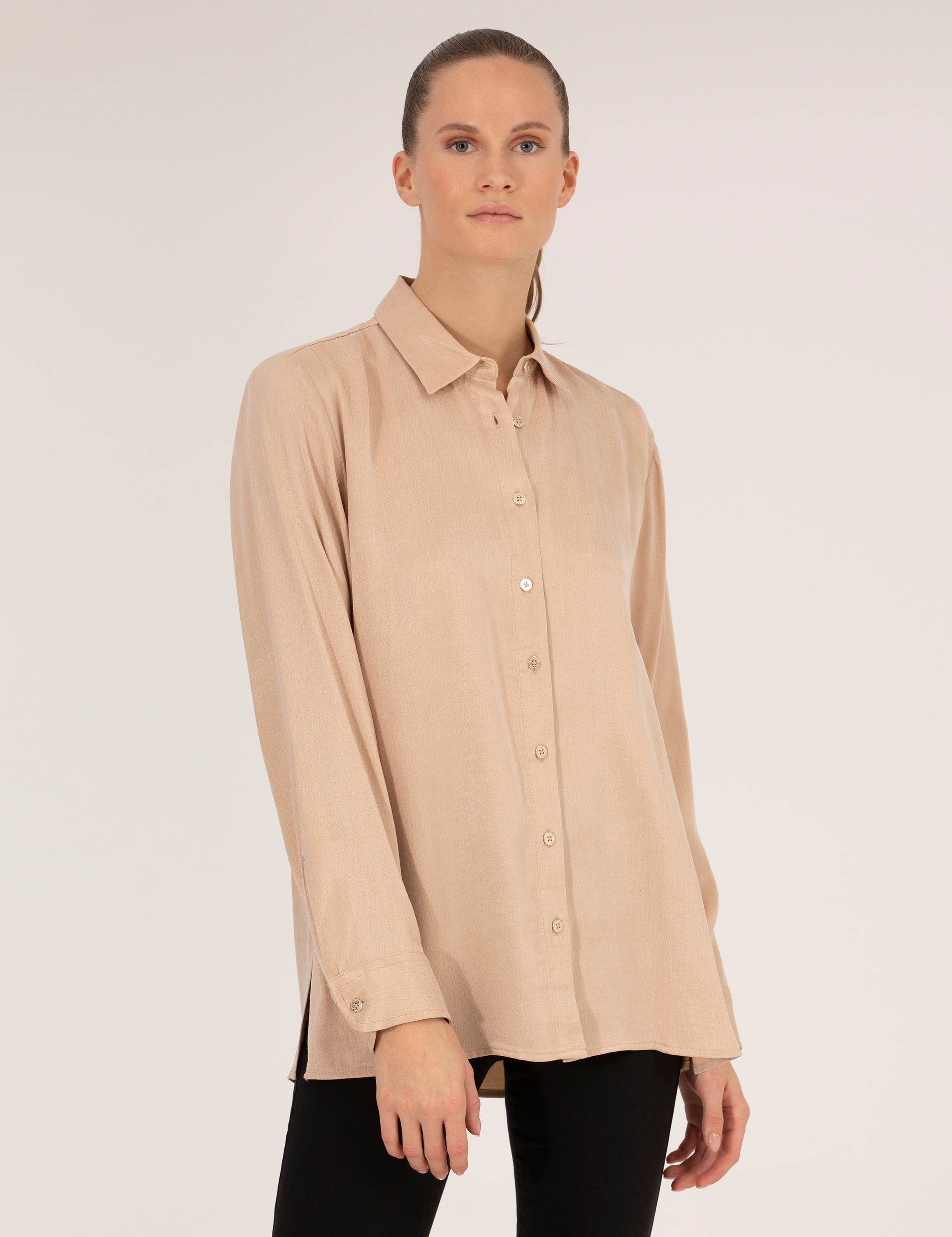 - Bej Comfort Fit Uzun Kollu Gömlek