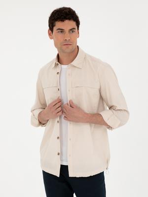 Bej Comfort Fit Uzun Kollu Gömlek