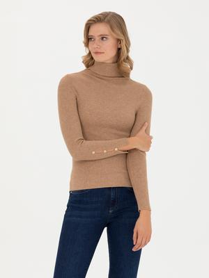 Bej Ex. Slim Fit Balıkçı Yaka Kazak