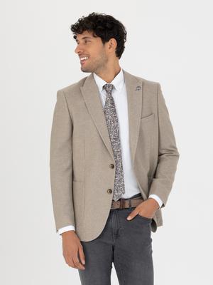 Bej Ekstra Slim Fit Yün Karışımlı Blazer Ceket