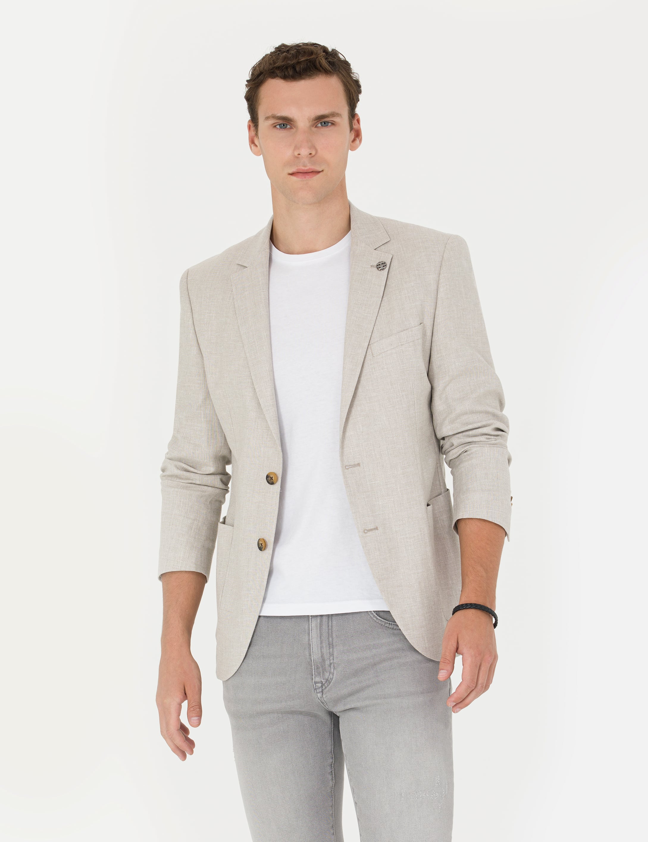 Bej Ex. Slim Fit Keten Karışımlı Blazer Ceket