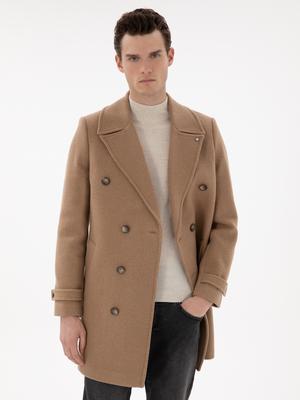 Bej Ex. Slim Fit Yün Karışımlı Kaşe Kaban