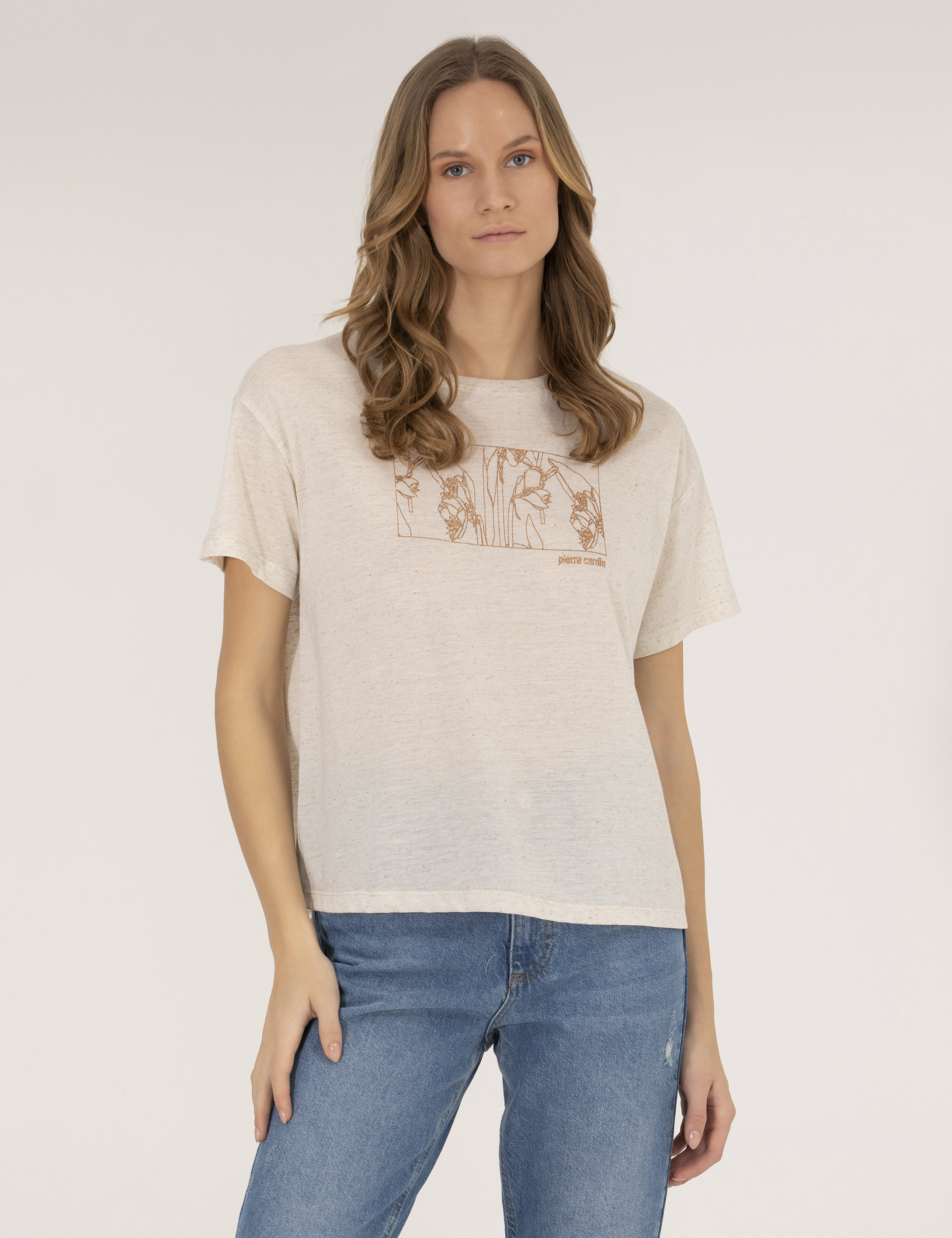 Bej Melanj Keten Karışımlı Tişört