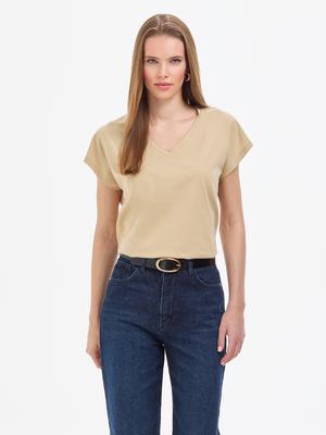 - Bej Regular Fit Basic Tişört