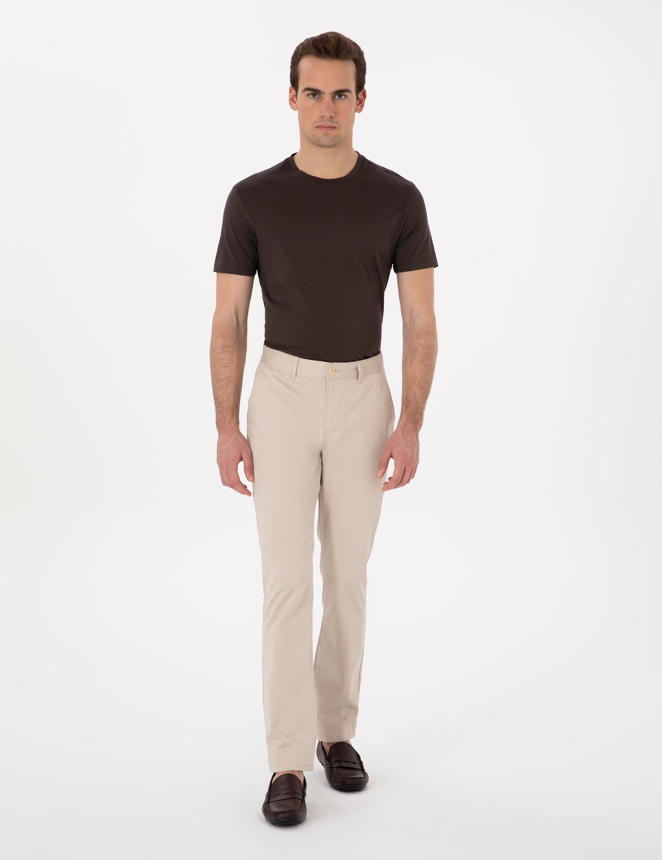 - Bej Regular Fit Basic Kanvas Pantolon
