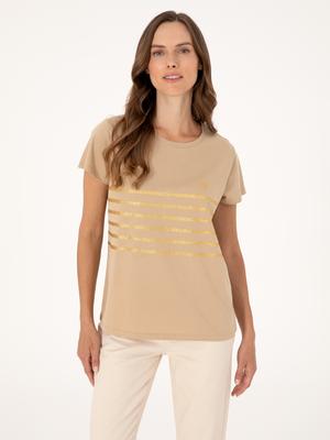 Doğal bej zemin üzerine yerleştirilmiş çizgili baskı detayıyla öne çıkan Pierre Cardin regular fit tişört, sade görünümleri karakter sahibi bir stile dönüştürüyor. Yatay çizgiler modern bir ritim yaratırken, bej tonunun sıcak ve yumuşak etkisiyle dengeleniyor. Göz yormayan ama dikkat çeken bu desen yapısı, tişörtü sıradanlıktan uzaklaştırıyor ve zamansız hale getiriyor. Kısa kollu tasarımı ve bisiklet yaka formu sayesinde hem günlük kombinlere hem de katmanlı görünümlere rahatlıkla adapte oluyor. Esnek yapıya sahip konforlu kumaşı sayesinde gün boyu rahatlık sağlarken, regular fit kesimiyle de vücudu özgürce sarmadan şık bir duruş sunuyor. Bej rengin doğallığını lacivert, taş ya da kahve tonlarıyla tamamlayabilir; bol paça pantolonlarla sofistike, denim şortlarla ise daha enerjik bir stil yaratabilirsin. Minimal ama özgün detaylara sahip bu tişört, gardırobunda kalıcı bir yer edinmeye aday.