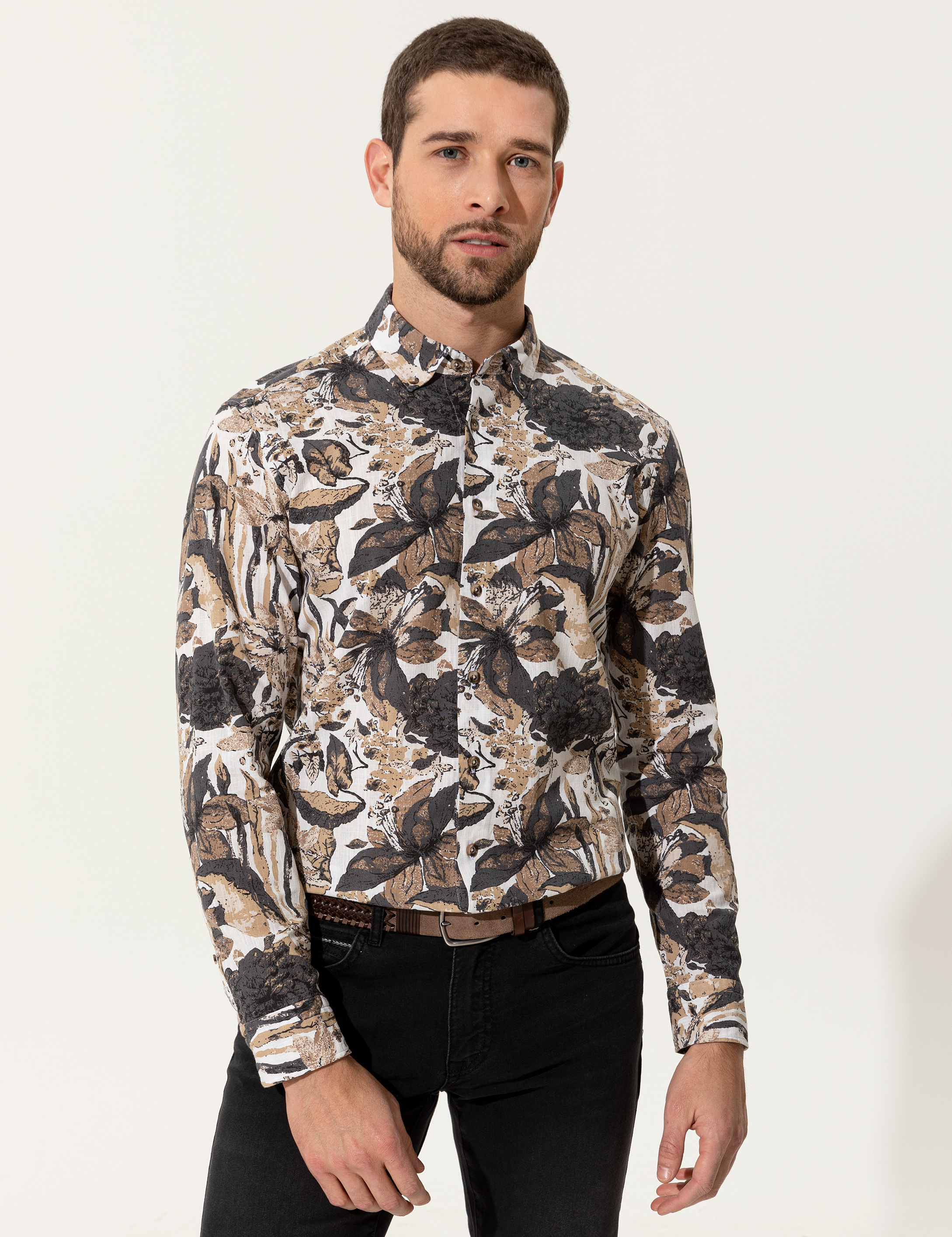 *Her kombinde modern ve dinamik görünmek küçük detaylarla mümkündür. Düğmeli yaka formu sayesinde smart casual kombinlere yeni bir soluk getiren erkek gömleğimiz bu konuda yardımınıza koşar. Sadece zengin detaylarıyla değil baskılı tasarımıyla da şık görünümü modernize eden erkek gömlek modelimiz fark yaratan görünümlerin kahramanıdır. Regular fit kesimi sayesinde üst düzey konfor sunan %100 pamuk erkek gömleğimiz nefes aldıran dokusu ile eşsiz hissettirir.