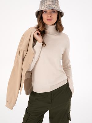 - Bej Slim Fit Balıkçı Yaka Basic Kazak
