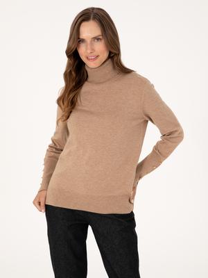 - Bej Slim Fit Balıkçı Yaka Basic Kazak