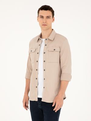 - Bej Slim Fit Uzun Kollu Jean Gömlek