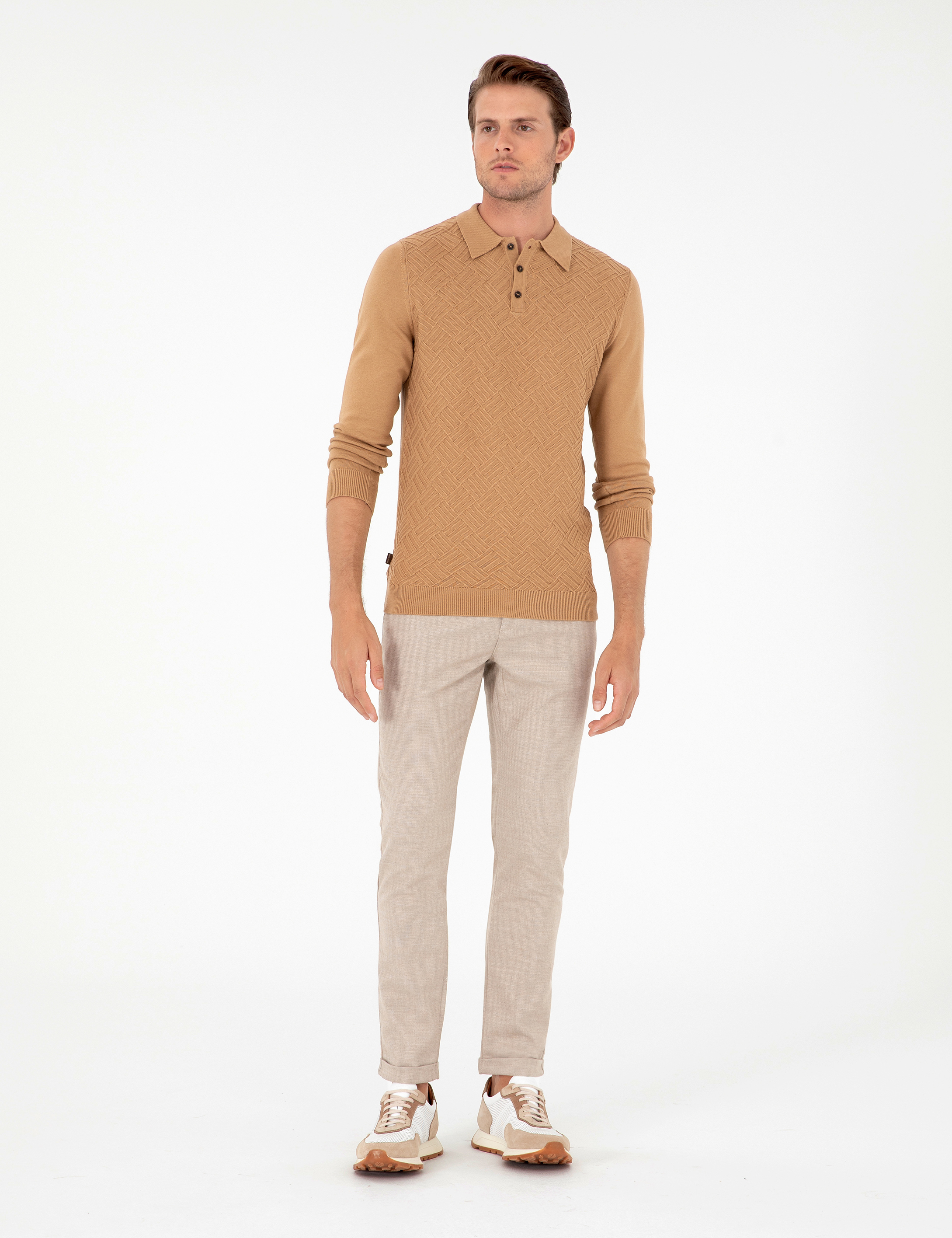 Bej Slim Fit Bağcıklı Kanvas Pantolon
