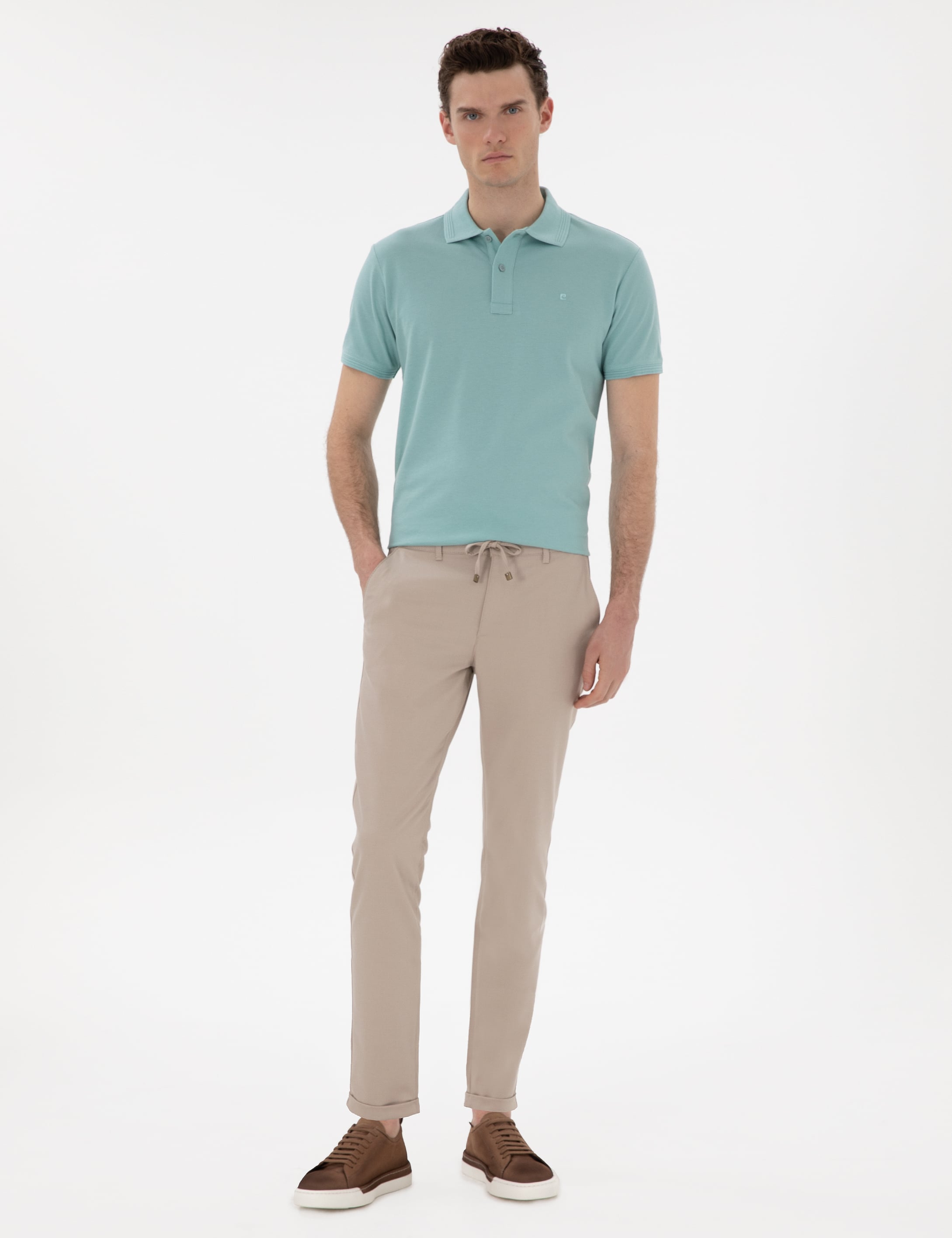 Bej Slim Fit Bağcıklı Kanvas Pantolon