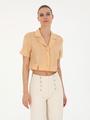 - Bej Keten Karışımlı Slim Fit Crop Gömlek