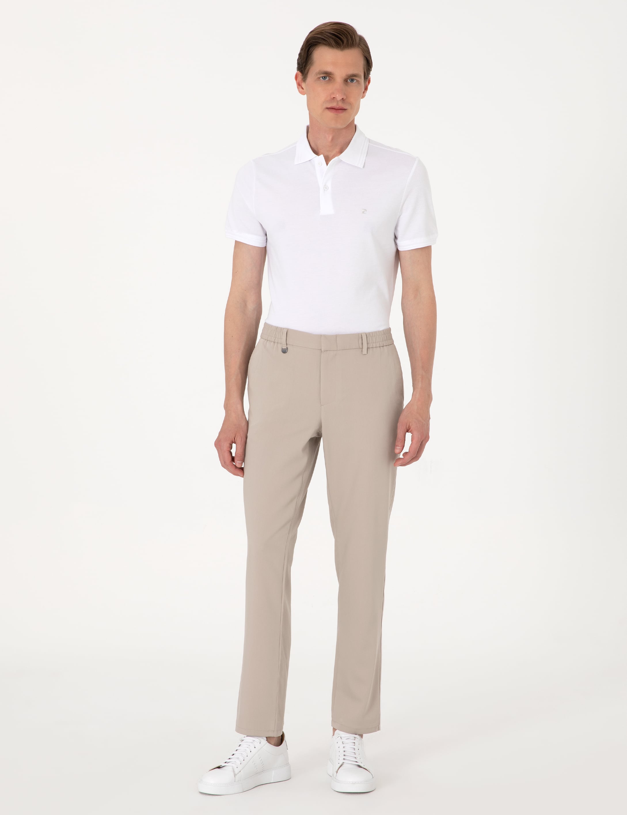 *Modern tarzı konforla birleştiren Pierre Cardin bej slim fit kumaş pantolon, şıklığından ödün vermeyen erkekler için ideal bir seçenektir. Kumaşı sayesinde gün boyu rahatlık sunar. Slim fit kesimi vücuda oturan yapısıyla zarif bir siluet oluştururken, düz deseni ve nötr bej tonu sayesinde hem klasik hem de casual kombinlere kolayca uyum sağlar. Ofis şıklığından hafta sonu stiline kadar geniş bir kullanım alanı sunan bu pantolon, gömlek ve blazer ceketlerle kusursuz bir uyum yakalar.