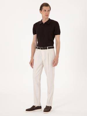 Bej Slim Fit Keten Karışımlı Pileli Kumaş Pantolon