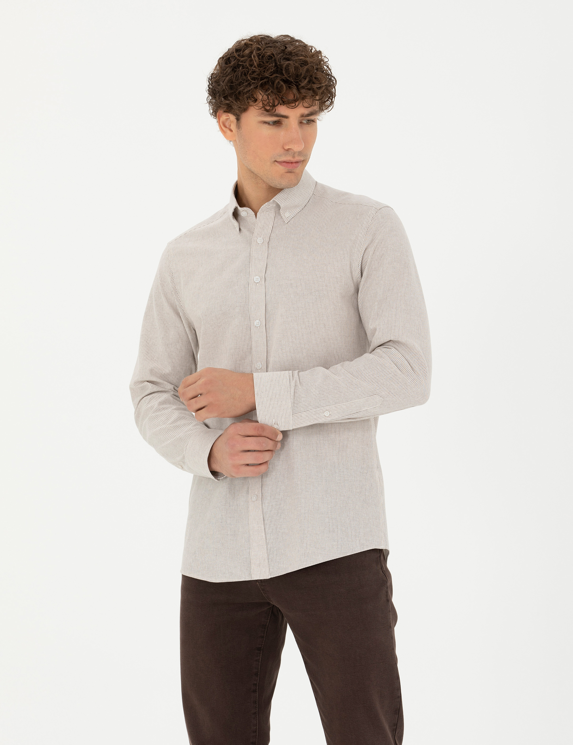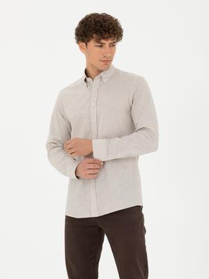 Bej Slim Fit Uzun Kollu Gömlek