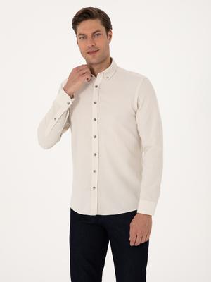 Mikro desenli bej gömlek, %100 pamuk dokusu sayesinde cilde nefes aldıran ve gün boyu konfor sağlayan bir yapıya sahiptir. Slim fit kesimi, vücuda uyumlu bir siluet sunarken düğmeli yaka detayı klasik ve düzenli bir görünüm oluşturur. Cepli tasarımdan uzak, sade formu ile hem iş kombinlerinde hem de günlük şıklıkta rahatlıkla kullanılabilir.