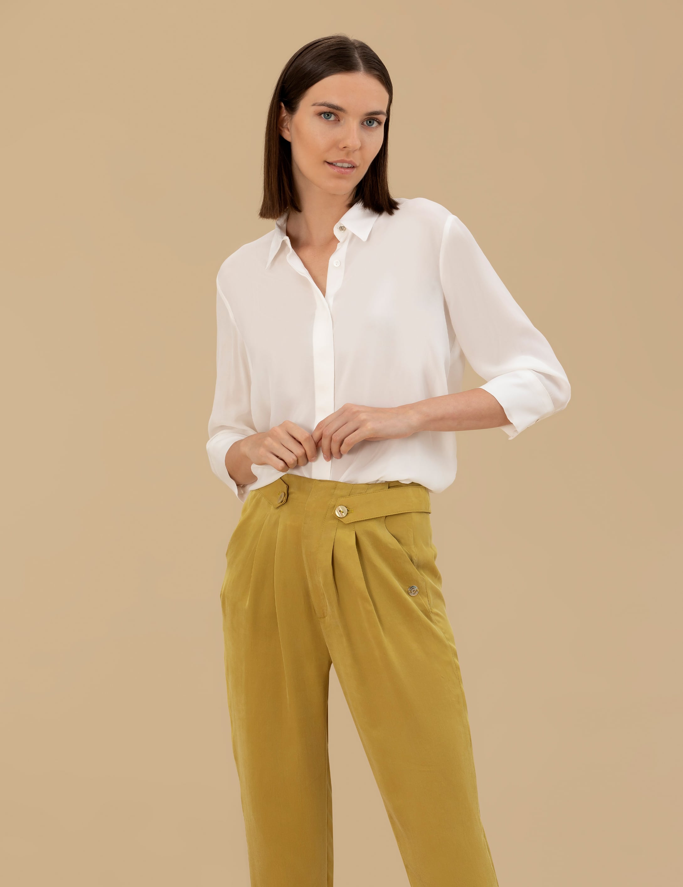 - Beyaz Cupro Comfort Fit Uzun Kollu Gömlek