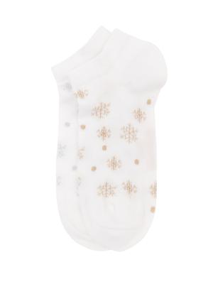 Kadın Beyaz Desenli 2'li Patik Çorap