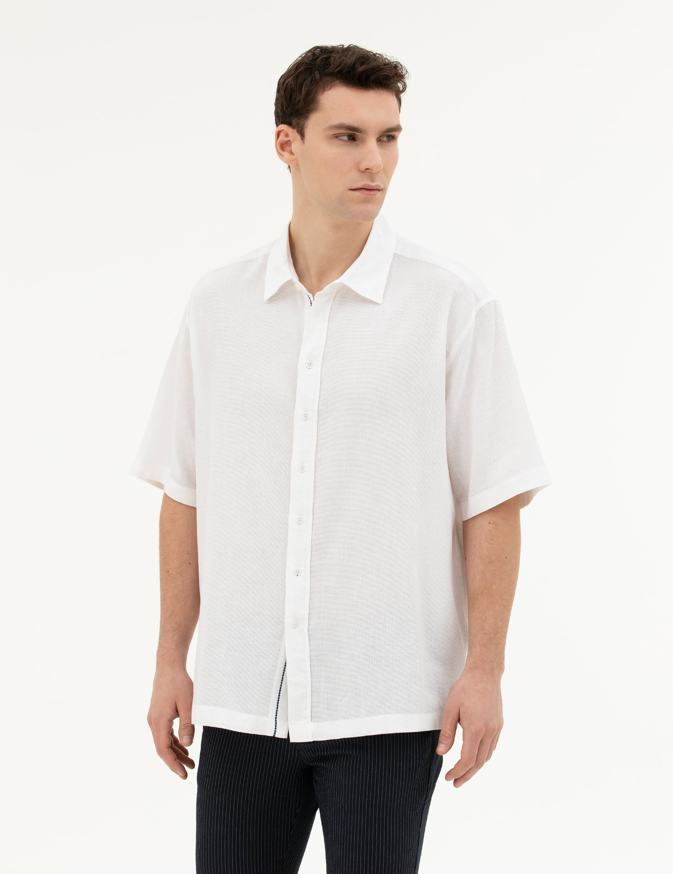 - Beyaz Oversize Kısa Kollu Gömlek