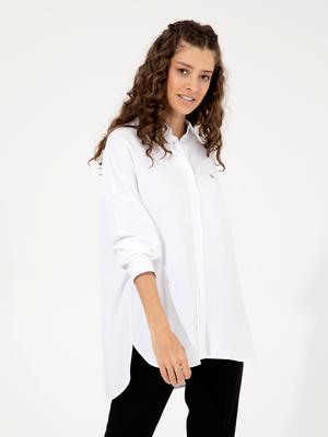 Beyaz Keten Karışımlı Gömlek