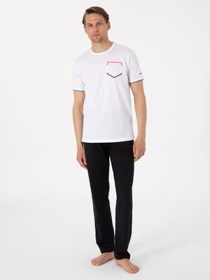 Kısa kollu üst ve uzun alt parçadan oluşan bu pijama takımı, rahatlığı ve işlevselliği bir araya getiriyor. Üst bölümde yer alan desen baskısı, klasik görünüme modern bir dokunuş katıyor. Sade ve zarif tasarım çizgileriyle öne çıkan model, ev giyiminde hem estetik hem de konfor arayanlara hitap ediyor. %100 pamuklu kumaşı sayesinde cilt dostudur, gün boyu veya gece boyunca ferah bir kullanım sunar. Düz formdaki alt parça, vücudu sıkmadan konforlu bir hareket alanı sağlar. Günlük kullanımda ideal bir tercih olan bu pijama takımı, hem dinlenme zamanlarında hem de evde geçirilen rahat anlarda size eşlik etmeye hazır.