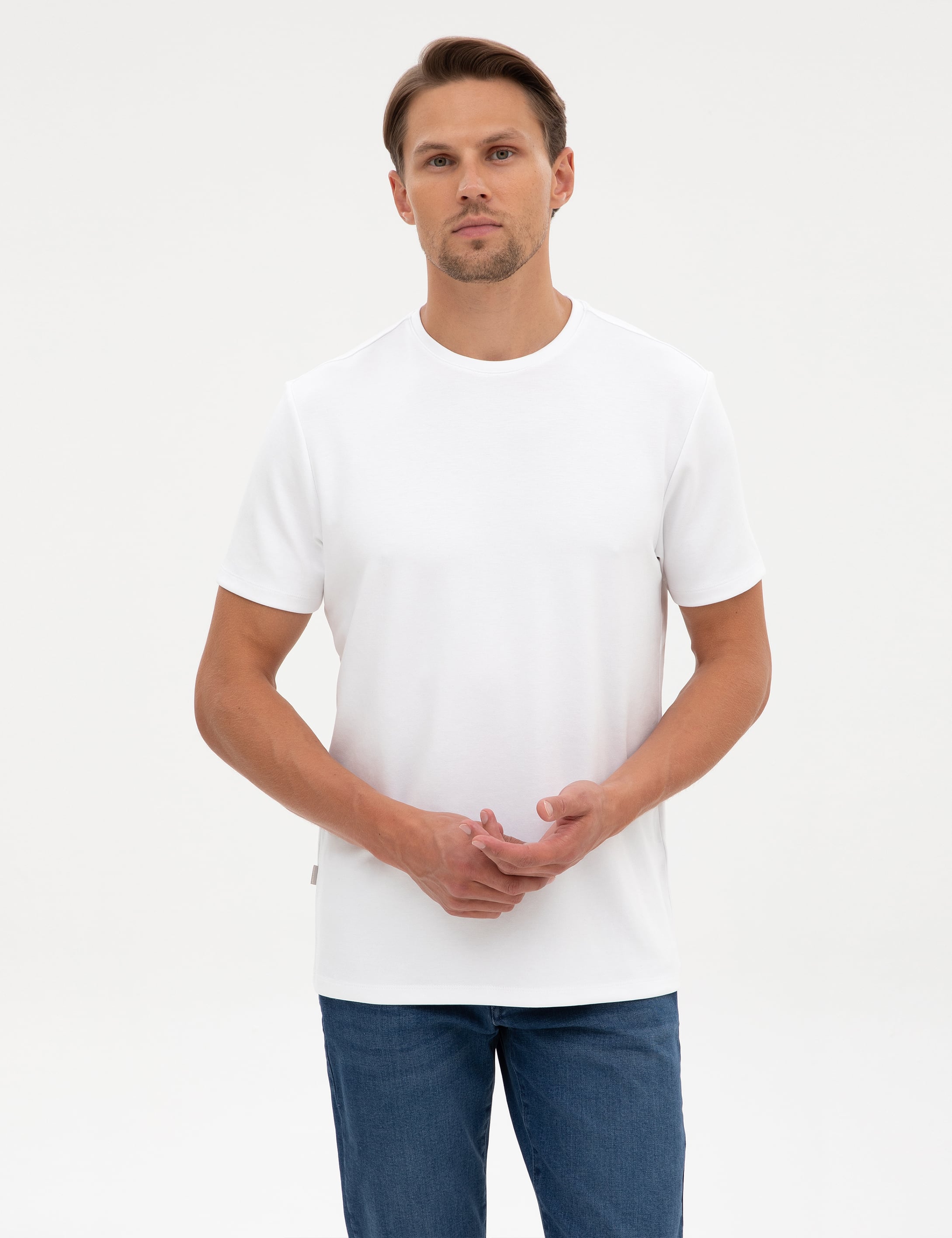 Beyaz Regular Fit Kalın Dokulu Bisiklet Yaka Basic Tişört