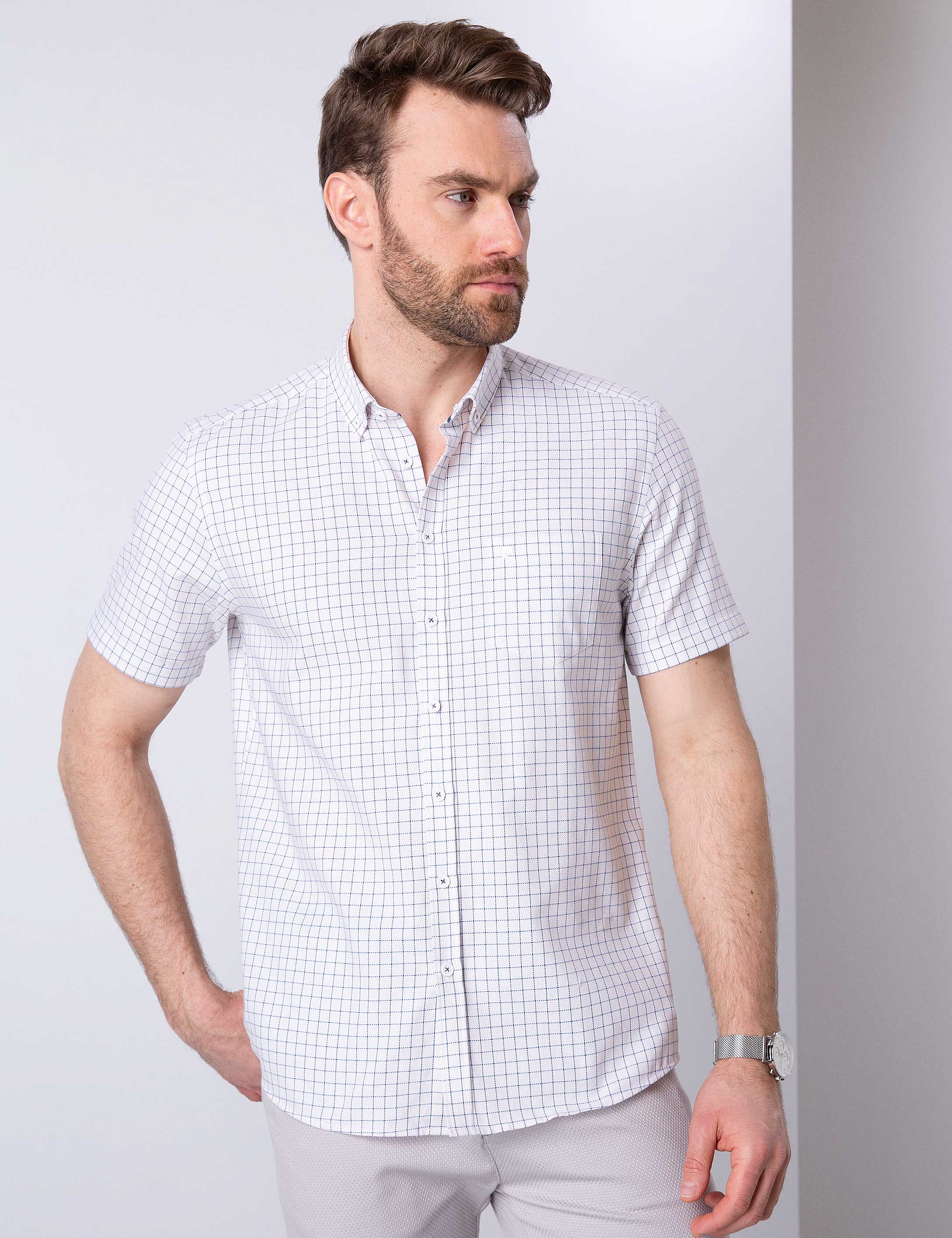 Beyaz Regular Fit Kısa Kollu Gömlek