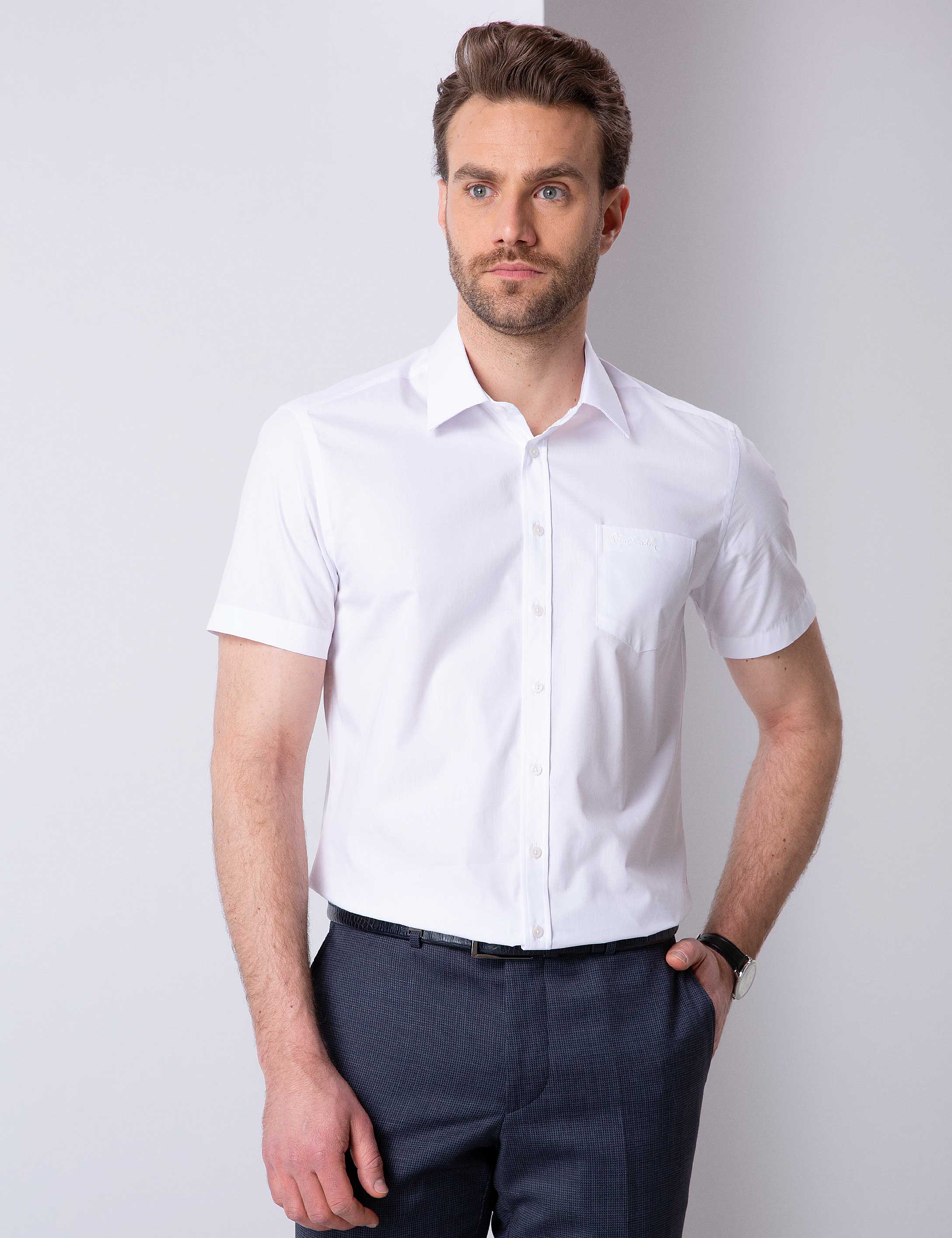 Beyaz Regular Fit Kısa Kollu Gömlek