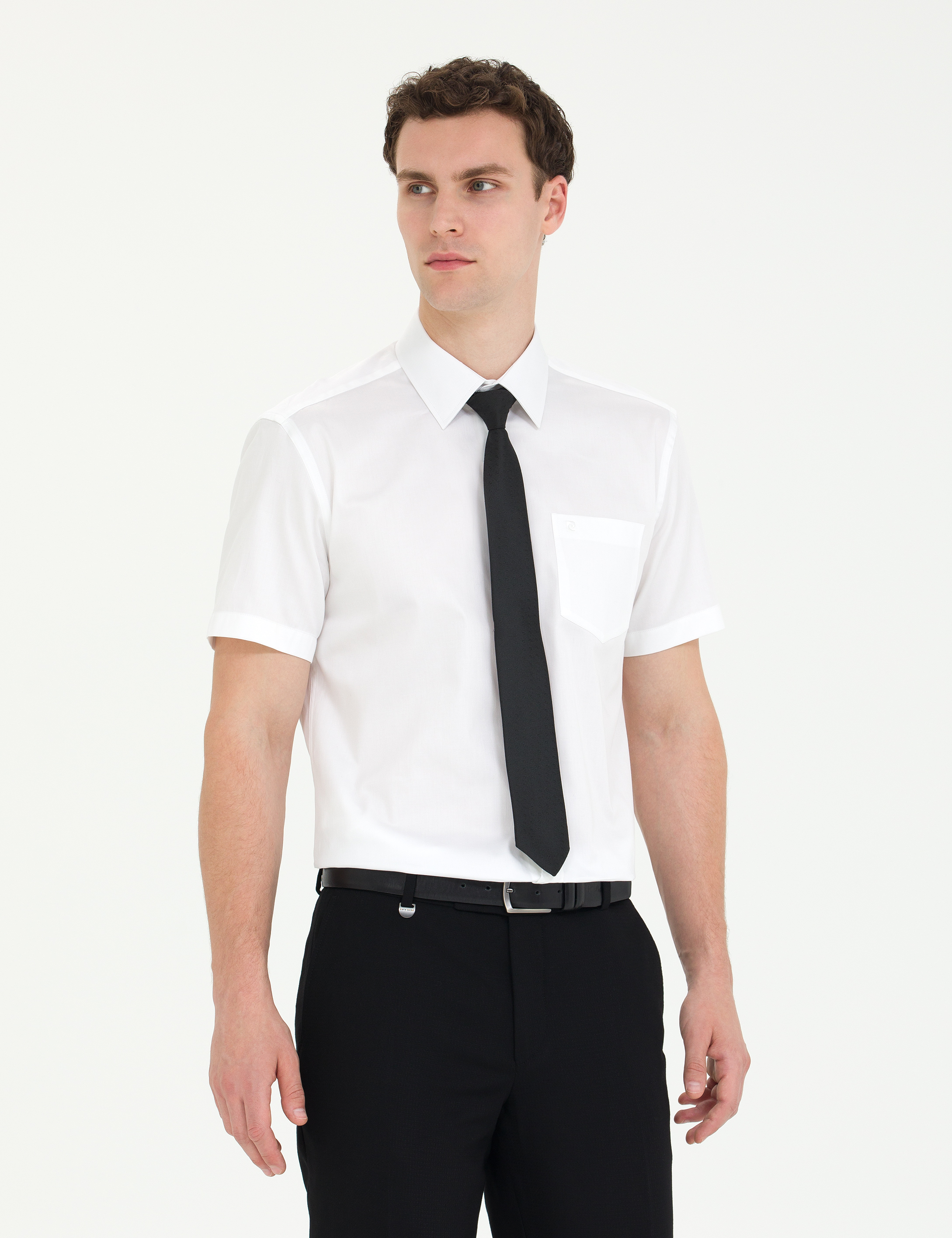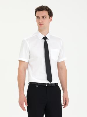 - Beyaz Parlak Saten Regular Fit Kısa Kollu Basic Gömlek