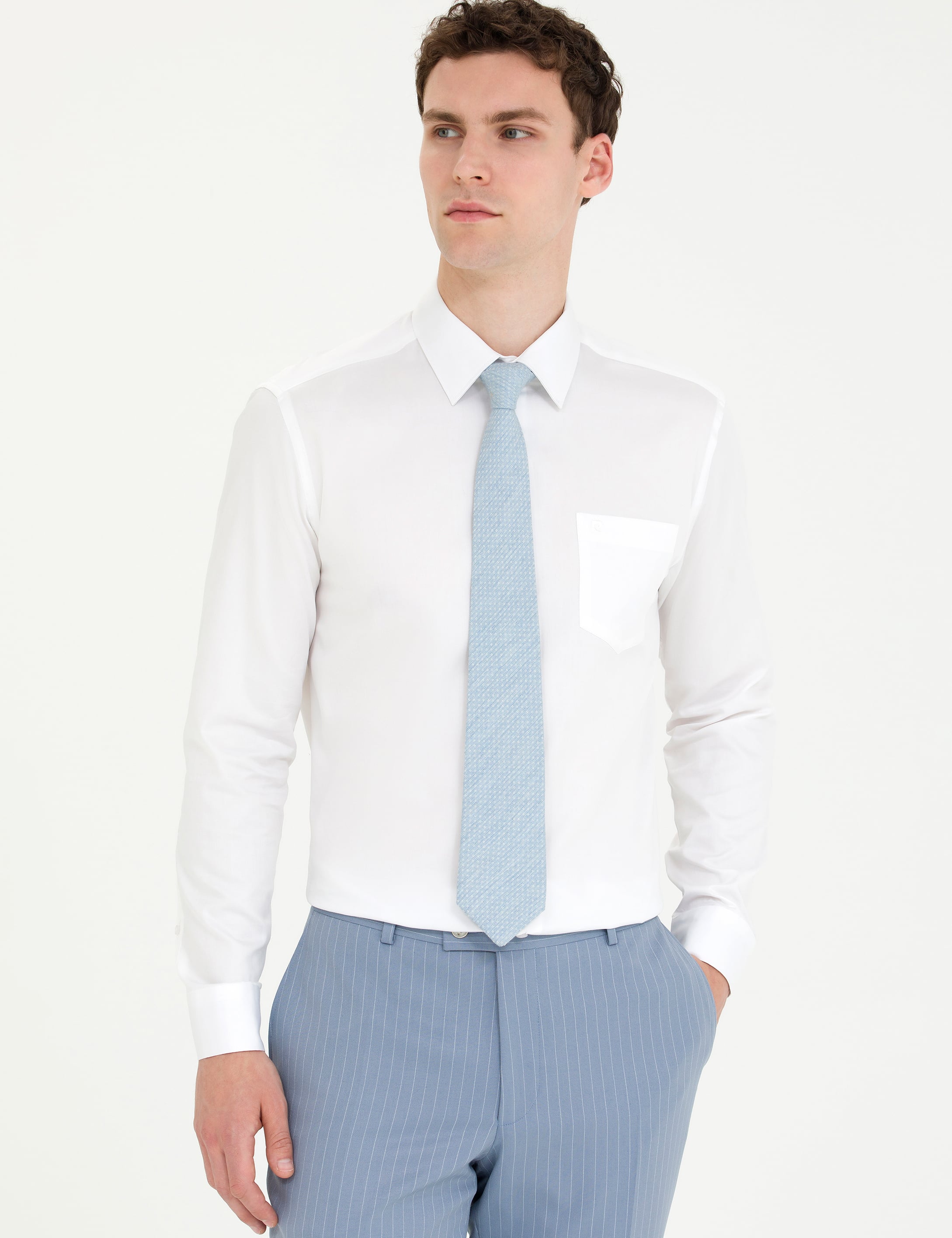 Beyaz Parlak Saten Regular Fit Uzun Kollu Basic Gömlek