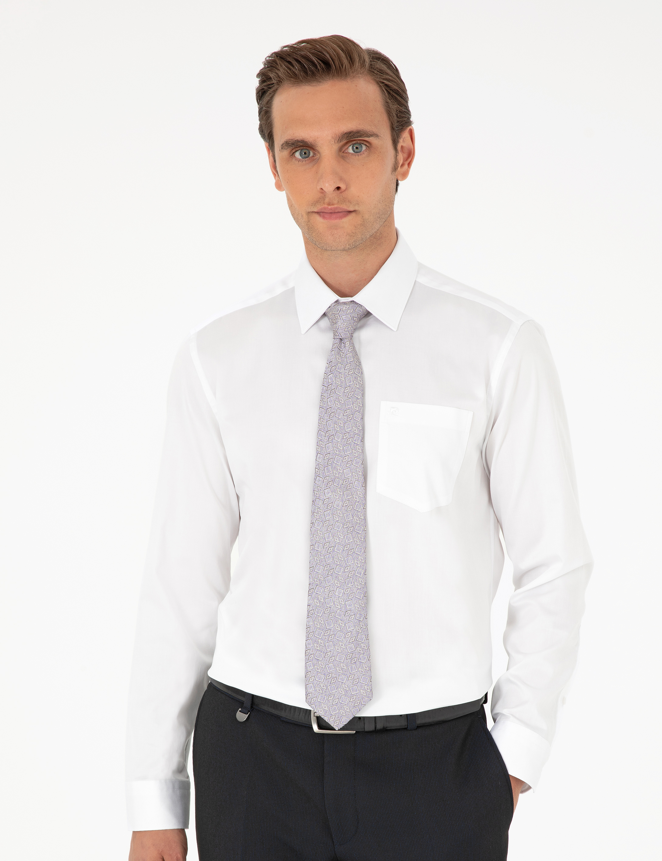 Beyaz Parlak Saten Regular Fit Uzun Kollu Basic Gömlek