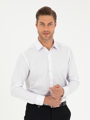 - Beyaz Regular Fit Armürlü Uzun Kollu Gömlek