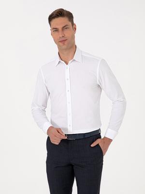 Beyaz Regular Fit Armürlü Uzun Kollu Gömlek