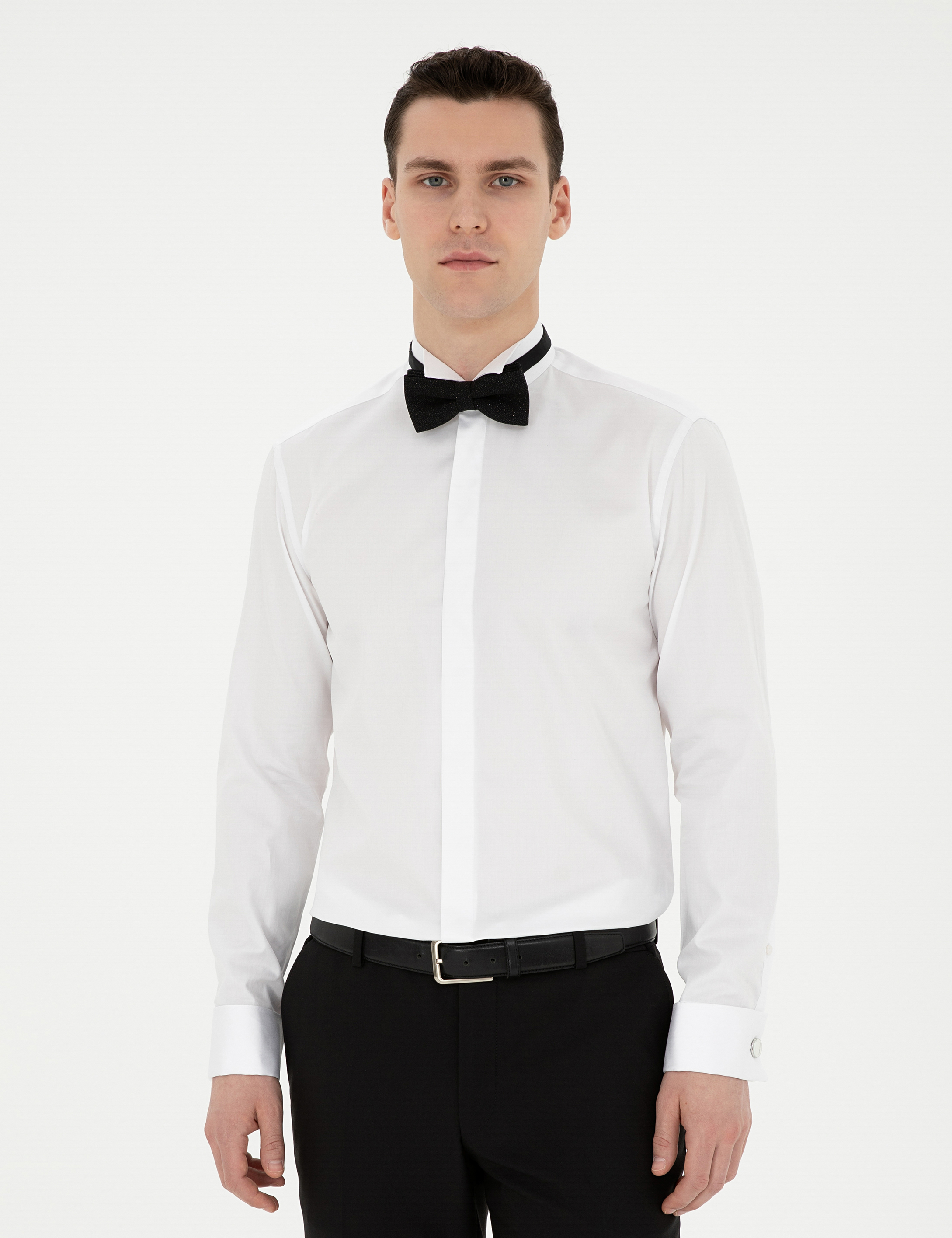 Beyaz Slim Fit Smokin Gömlek