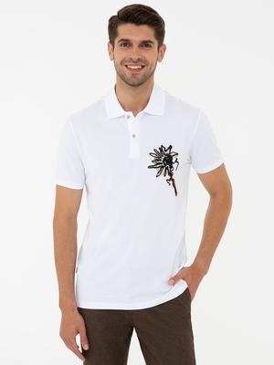 Beyaz Slim Fit Baskılı Polo Yaka Tişört