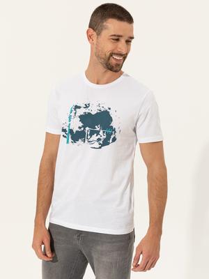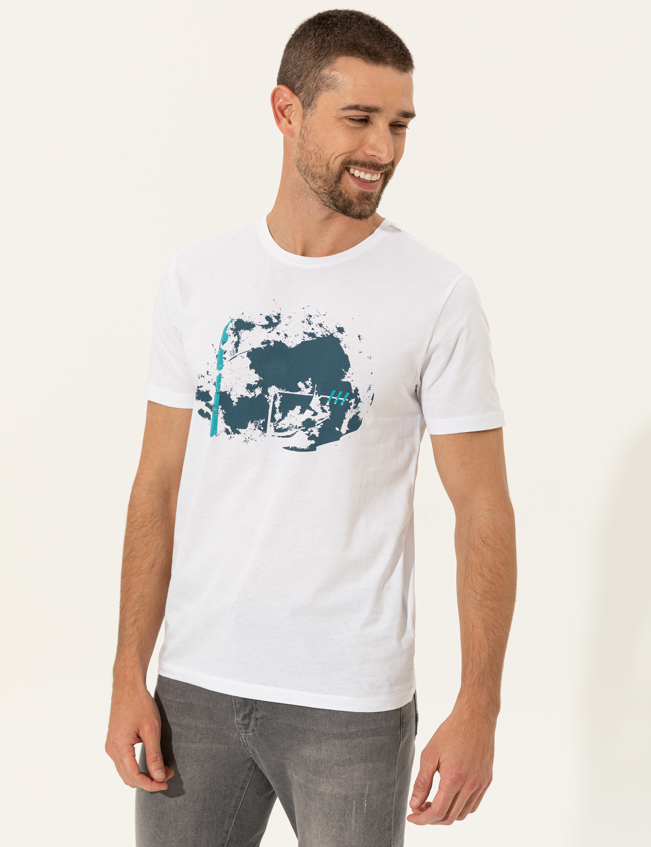 Beyaz Slim Fit Bisiklet Yaka Tişört