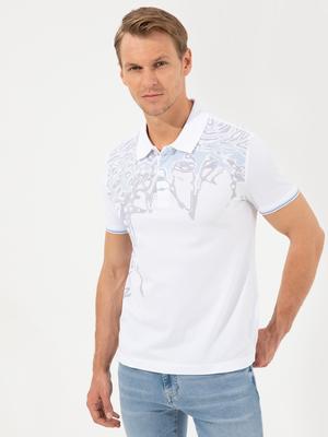 Beyaz Slim Fit Baskılı Polo Yaka Tişört