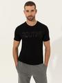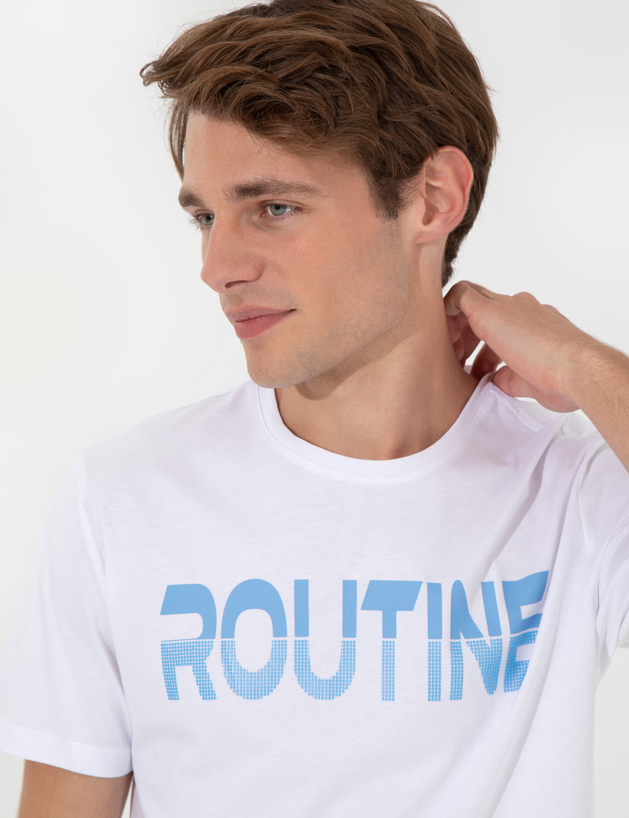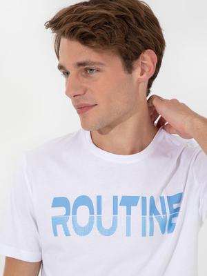 Beyaz Slim Fit Baskılı Bisiklet Yaka Tişört
