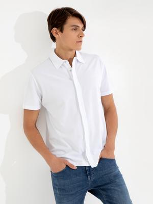 Beyaz Slim Fit Gömlek Yaka Tişört