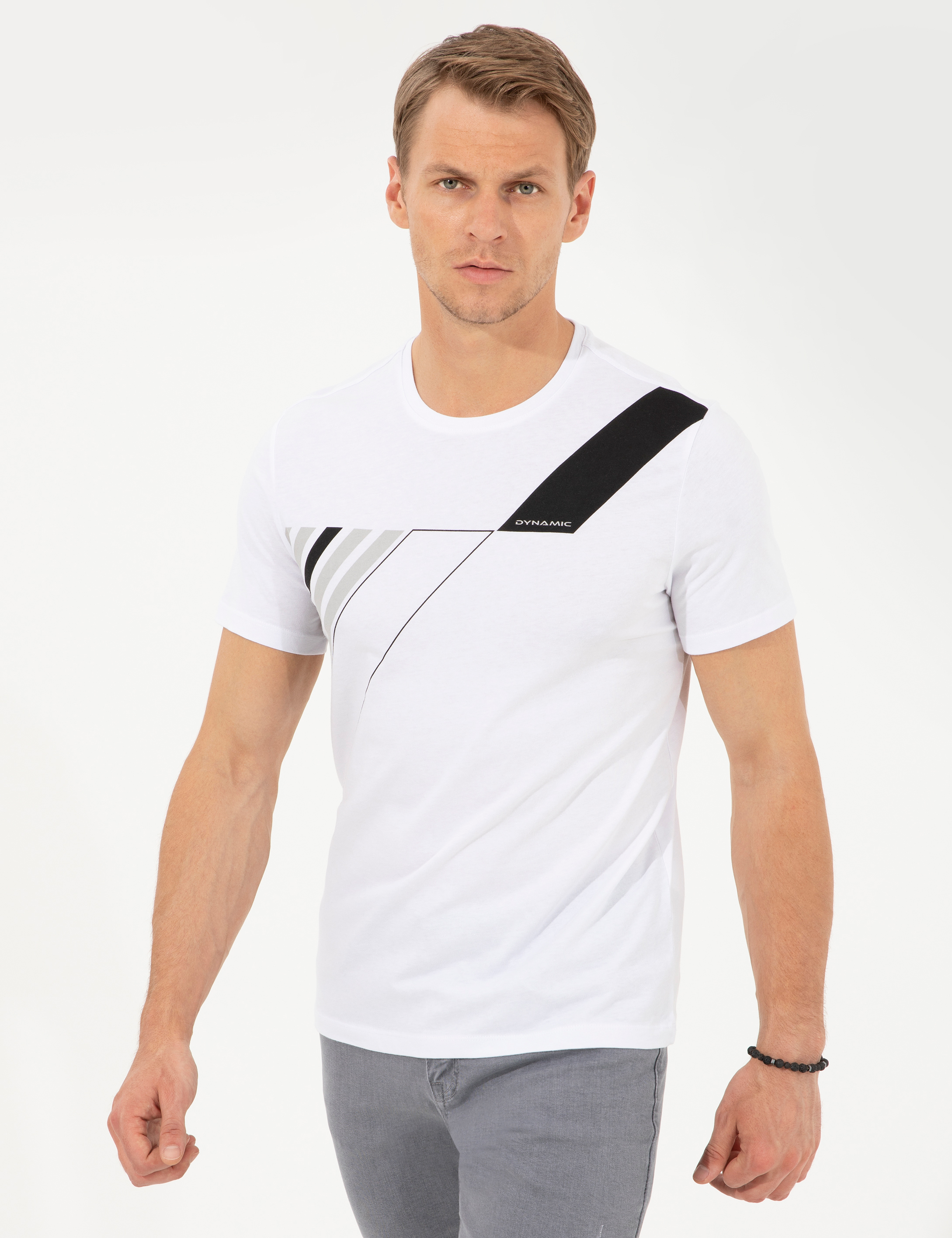 Beyaz Slim Fit Bisiklet Yaka Tişört