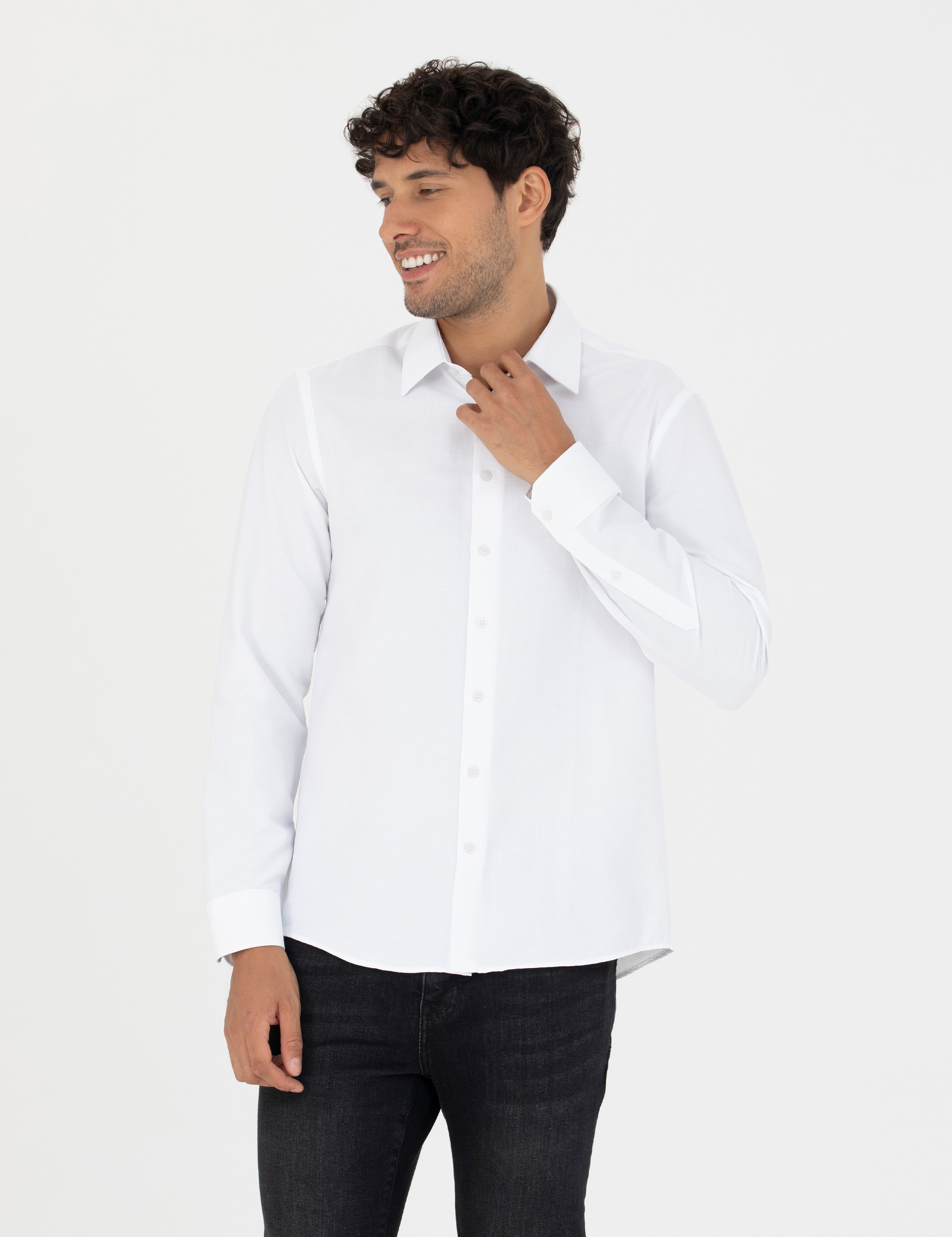 Beyaz Slim Fit Uzun Kollu Gömlek