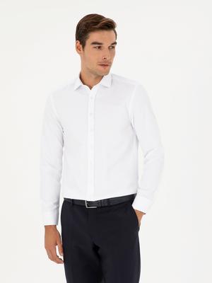 Beyaz Slim Fit Armürlü Uzun Kollu Gömlek