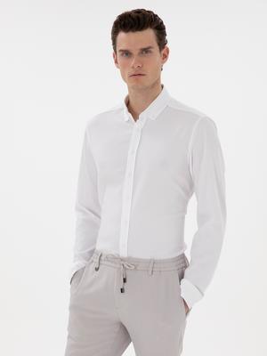 Beyaz Slim Fit Çizgili Uzun Kollu Gömlek