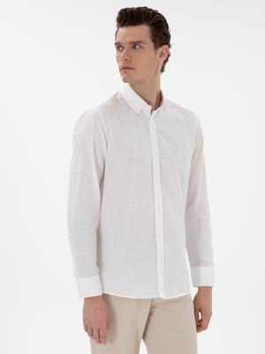Beyaz Slim Fit Keten Görünümlü Gömlek