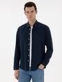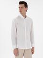 - Beyaz Slim Fit Keten Görünümlü Gömlek