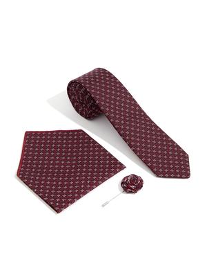 Bordo 3'lü Kravat-Mendil-Kravat İğnesi Set