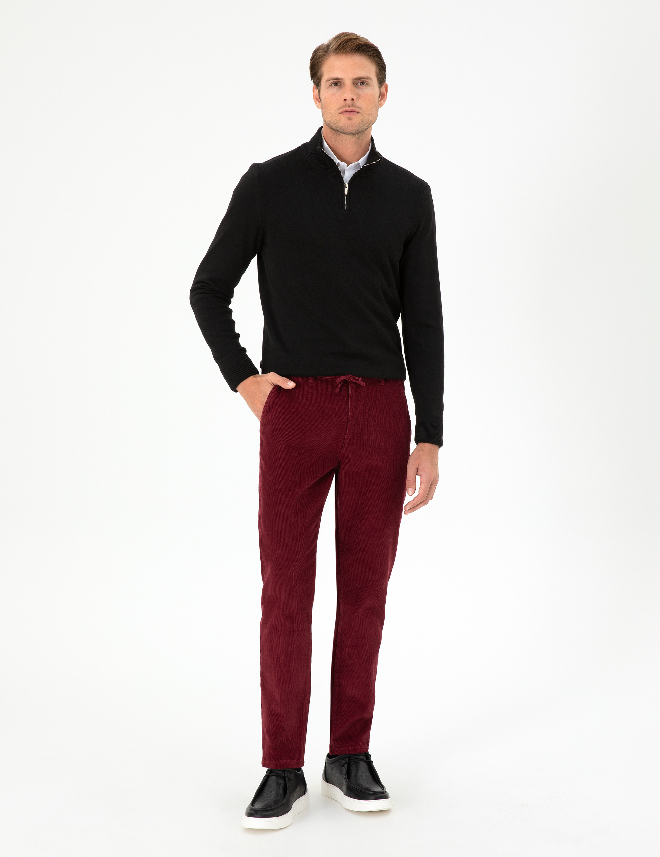 Bordo Carrot Fit Kadife Kanvas Pantolon