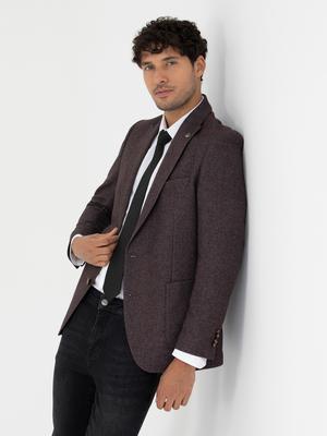 Bordo Ekstra Slim Fit Yün Karışımlı Blazer Ceket