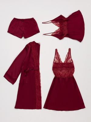 - Bordo Saten 4'lü Çeyiz Seti